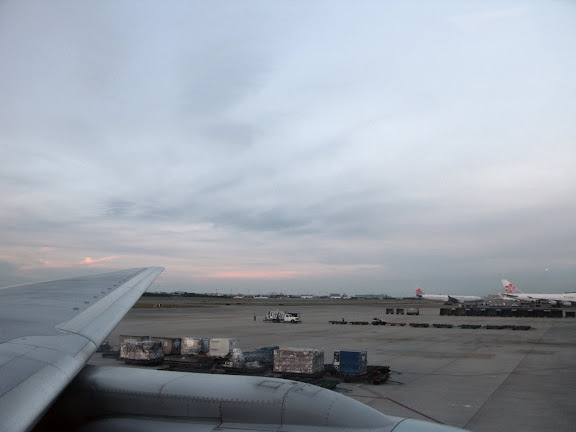 爸媽和弟弟都來替我送行,通關前照了大合照,接下來就是我一個人的旅行了,航警催促我動作要加快,結果背著10公斤的大背包+5公斤的電腦包飛奔,我終於知道變胖15公斤的感覺了,我發誓我到了丹麥會努力把這學期長出來的肥肉消除!