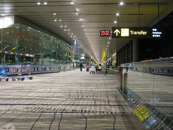 抵達新加坡後要等兩個半小時才能轉機,原先想要用機場的無線網路,結果我的手機當初沒有設定國際漫遊,害我收不到機場傳給我的密碼,只好自己在機場晃晃找樂子。第二次到樟宜機場卻一點印象都沒有,聽說第三航站才剛落成,難怪跟印象中有些不同,而且第三航站裡面就有自己的捷運讓大家節省行走時間,應該讓趕時間的旅客方便許多。